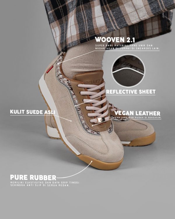 Upper : Kulit Suede Asli, Vegan Leather , Wooven, Reflective Sheet